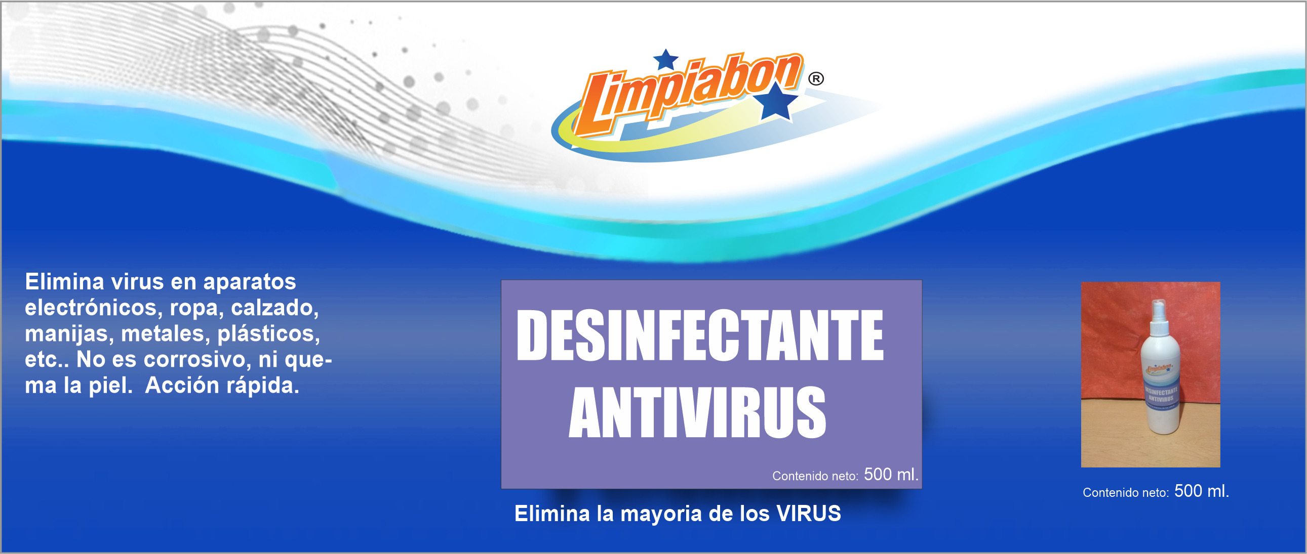 Elimina la mayoría de los virus. No contiene cloro.